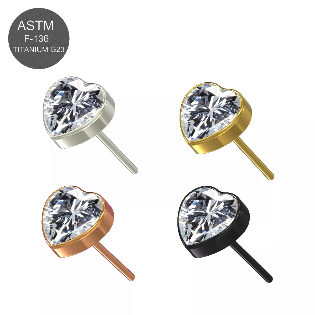 Enhance your studio's presentation with this ready-to-sell jewelry collection. This kit features 24 precision-crafted G23 Implant-Grade Titanium (ASTM F-136) Jeweled Heart Labrets, expertly pre-arranged on a sleek acrylic stand for an instant professional upgrade. Ideal for retailers seeking high-demand, hypoallergenic threadless inventory that is ready for the counter the moment it arrives.