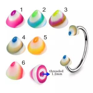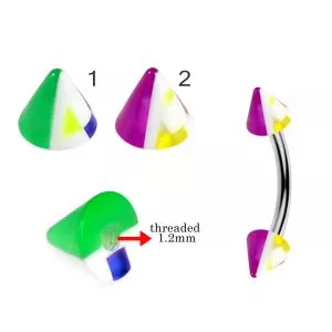 316L Surgical Steel Eyebrow Twisted Barbell With Faded Color UV Cones