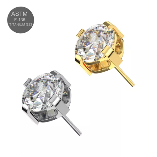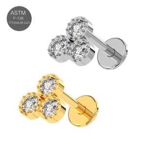 G23 Grade Titanium Clear Round CZ Design Tragus Top Push Fit with Flat Back Labret