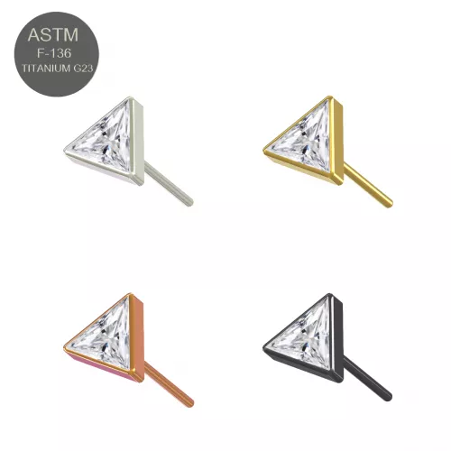 Whether you're expressing your unique sense of style or looking for the perfect accessory to complete your look, our G23 Grade Titanium Triangle CZ Jeweled Tragus Top Push Fit With Labret is sure to make a statement. Embrace individuality and elevate your style effortlessly with this timeless piece of jewelry.