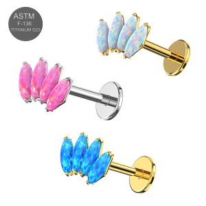 G23 Grade Titanium Triple Opal Stone Threadless Pin Top